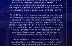 BOC Statement on Senate Probe Involving the Discaya Luxury Vehicles